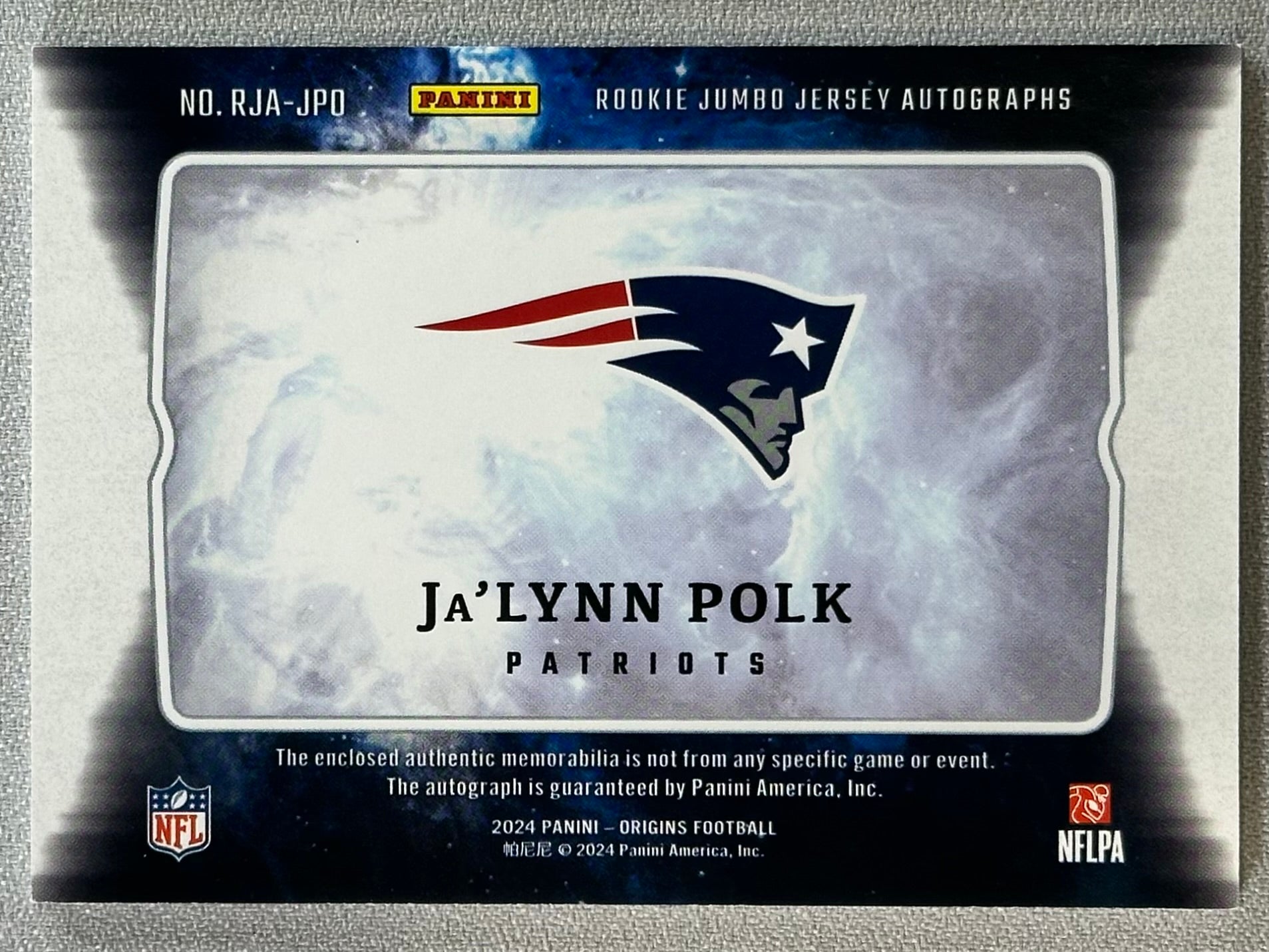 2024 Panini Origins Ja'Lynn Polk Rookie Jumbo Jersey Autographs #RJA-JPO RC